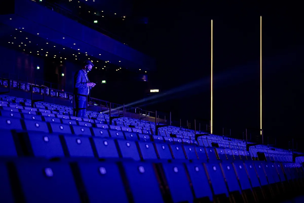 Dan de plek waar alle muziekliefhebbers op zitten te wachten: De RTM. Op het eerste oog ziet het eruit als de kuip van AFAS Live: Een diepe vierkante zaal, een podium, balkons en een rits stoelen, maar dan net een tikje nieuwer en met de nieuwste snufjes. Zo kan het complete podium op- en afgebouwd worden. Een state of the art midsize arena zoals ze het zelf noemen. In concertsetting biedt de ruimte plek voor zo’n 7800 mensen, waarbij het bijna tweeduizend man meer op kan vangen dan de AFAS Live. Willen ze dan net zoveel concerten neerzetten als hun Amsterdamse concurrent? Jansen: ‘In de RTM is naast muziek ook ruimte voor congressen en theater. In de loop van de tijd gaan we kijken wat de verhoudingen daarin gaan worden en hoeveel er dan precies gaat plaatsvinden.’ Technisch gezien zouden ze beide evenementen op één dag kunnen uitserveren. De zaal kan in drie luttele uurtjes omgebouwd worden van een stoffige congreszaal tot een dampende concertzaal. Het zou dus zomaar eens kunnen gebeuren dat je ’s middags op de wielrennersbeurs fietsen staat te verkopen en ’s avonds in diezelfde zaal staat te springen bij De Staat. Of het geluid dan wel goed is? Om dat te laten horen nodigde Ahoy het Rotterdams Philharmonisch Orkest uit om het geluid van de zaal te demonstreren. En ja, dat klinkt gewoon mooi. Het is geen Concertgebouw of de Doelen, maar zeker voor popconcerten zal de zaal prima dienst doen. De deuren zijn inmiddels geopend voor kleine congressen van max. 30 man, maar de onthulling voor het grote publiek hoopt het Rotterdamse podium te hebben tijdens het Songfestival dat, als alles goed gaat met sneltests en andere maatregelen, dit voorjaar in Ahoy plaatsvindt.