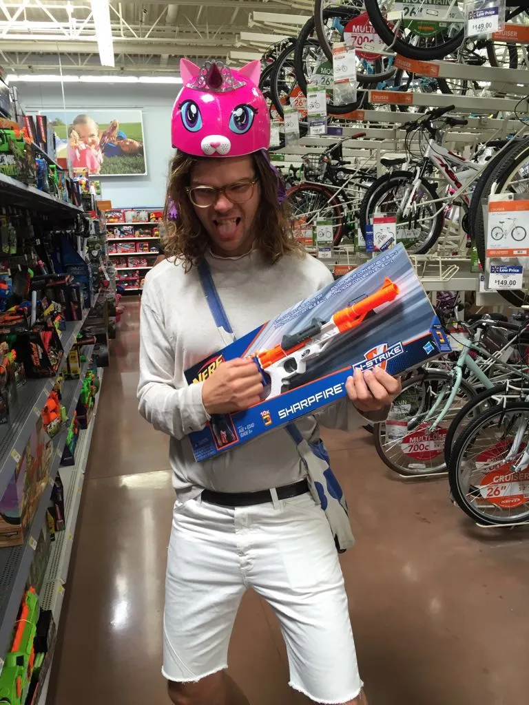 Onderweg boeken we vaak een goedkoop motel en sneaken dan met zijn vijfen op 1 kamer naar binnen met een luchtbedje. Ons luchtbed was lek dus gingen we naar een Walmart (die hier om de 5 km zit) voor plakspullen. Met Jaap een Walmart ingaan is als met een peuter een snoepwinkel ingaan. Zo. Veel. Dingen. Om. Aan. Te. Zitten.