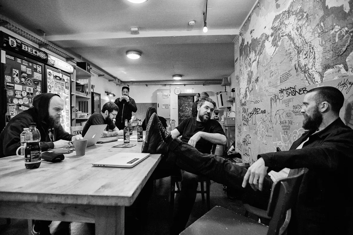 ‘Net als andere mensen moeten wij ook gewoon eten.’ Colin H. van Eeckhout meldt het droogjes. Aan de telefoon is de zanger van Amenra al net zo innemend en serieus als hij op het podium is. In een gesprek van een uur lacht hij slechts af en toe, voorzichtig. Van Eeckhout praat over Het Ochtendgloren, een onderdeel van de viering die Amenra dit weekend houdt in Paradiso en de Brakke Grond, het in Amsterdam gevestigde huis voor Vlaamse cultuur. ‘Het is een brunch’, vertelt hij. ‘Een samenzijn waar we in gesprek kunnen gaan over wat we doen. Jammer genoeg worden we nog steeds vaak bestempeld als ‘metalband’. Bij dit soort gelegenheden kunnen we laten zien dat we meer te vertellen hebben dan dat.’