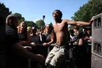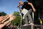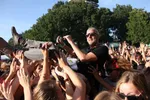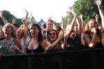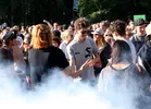 Maar het zijn toch weer de Nederlanders die het meest vakkundig met het Appelsap publiek omgaan. De Jeugd van Tegenwoordig laat vandaag vooral de geblondeerde Vjeze Fur de hoofdrol pakken. Hij wrijft zichzelf sensueel tegen het hek van Appelsap's mainstage bij zijn geile electrofunk sleper Vijf Sterren Abo, een welkome afwijking van de hitjesset op routine (finale: Sterrenstof, De Formule en Gekke Booooys). Och, wat een droom: een soloshow van Vjeze, met alleen zijn r&b krakers. In een wit linnen pak, in Carré ofzo, ik zou komen. Murda Turk zet op het kleine podium intussen een streep onder zijn huidige straathit Dat Doen We Niet Meer. Het is zijn Niggas In Paris, beweert hij, en dus doet hij hem gewoon twee keer. Hij doet het featuring iedereen, met meer mensen dan überhaupt op dat kleine podium passen, onder andere stevige delegaties Nouveau Riche en Levensmannen. Die nieuwe hit moet het vooral hebben van de keiharde trapbeat, en de eenvoudige tagline: 'eerst was ik skeer (blut, red.), maar dat doen we niet meer.' Hij predikt ook Wereldvrede, maar dan wel met de middelvinger naar de politie, en dat gaat er hier wel in.