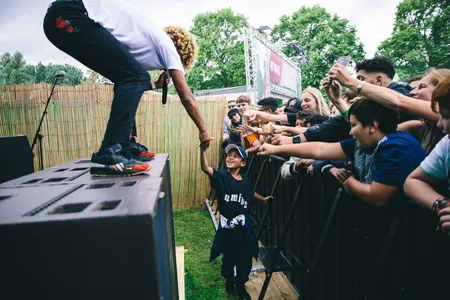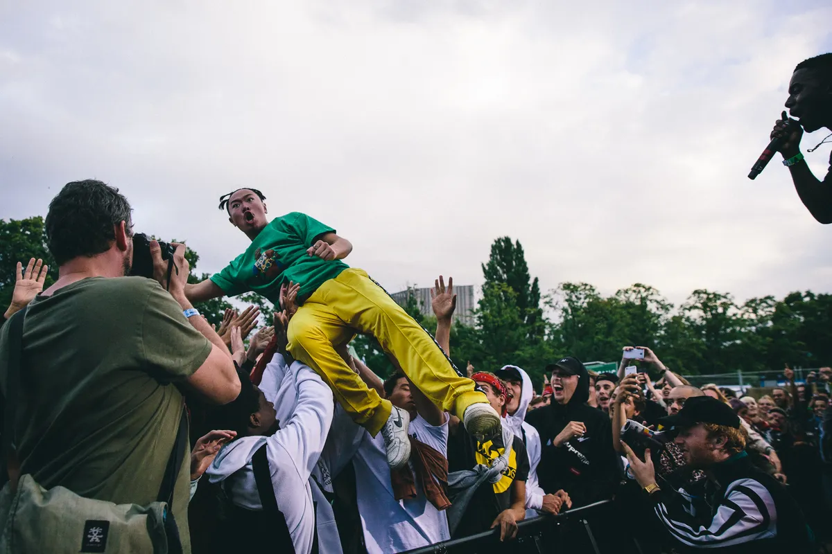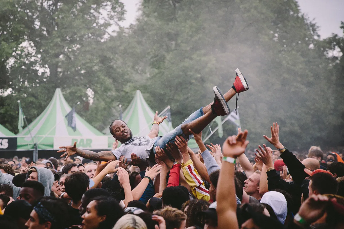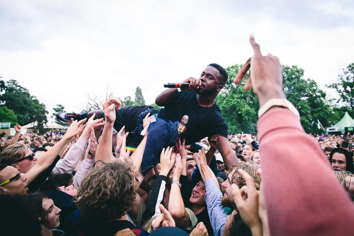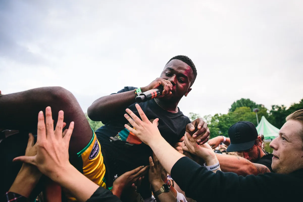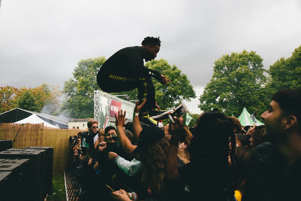 Inmiddels breekt de zon weer door bij Yung Nnelg, de Amsterdammer die zijn festival-zegetocht langs Woo-Hah, Best Kept Secret en Down The Rabbit Hole hier in het Flevopark nog even voortzet. Weer heeft-ie naast een dj ook die coole toetsenist mee om de bas nog wat dikker aan te zetten en af en toe wat jazzy akkoordjes neer te leggen. Ja, en hij krijgt hulp van rockster Ray Fuego en de piepjonge en hyperenthousiaste Leafs, maar hét moment van de show? Tijdens ‘Tempo’ trekt Nnelg een strijder in gele broek het podium op. ‘Ben je een beetje op tempo?’, vraagt Nnelg ‘m. ‘Een beetje, man, een beetje.’ Wat een bescheidenheid voor de jongen die zich vervolgens vol overgave en gierend van de adrenaline in het publiek dondert en zo de crowdsurf van de dag doet.