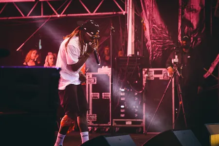 Kater? Jazeker, want de grote headliner van Appelsap valt een beetje tegen, zoals Fat Joe vorig jaar en Rich Homie Quan een jaar eerder ook nogal tegenvielen als Amerikaanse knallers van het festival. Lil Wayne dus, de man die in de jaren nul de mixtapecultuur heruitvond (je kunt aardig verdwalen in zijn oeuvre), op zijn label Cash Money grote sterren als Nicki Minaj en Drake lanceerde en zelf liet zien hoe gek je wel niet mag komen als hiphop-wereldster.
