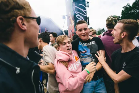 ‘ROTJOCH OP JE PODIUM!!!!’, klinkt het op de mainstage tijdens diezelfde vervelende regenbui. De grote roerganger van 101Barz krijgt voor zijn grote talentenshow ieder jaar een mooier plekje op het hoofdpodium, en trapt dit keer af met een Fresku & Friends-optreden waar vooral boerenjongen Pietju Bell en de theatraal boze Braz opvallen. Die tweede springt al tijdens zijn tweede nummer stagedivend het publiek in (met z’n voeten eerst!). ‘Voel je dat?’, vraagt een van zijn vrienden aan de zijkant van het podium terwijl hij naar de grond knikt. Verdomd ja, de jongens uit Eindhoven brengen zowaar een kleine aardbeving teweeg. En dan moeten de vlijmscherpe Mocromaniac en de explosieve 30 seconden van Killer Kamal nog komen.