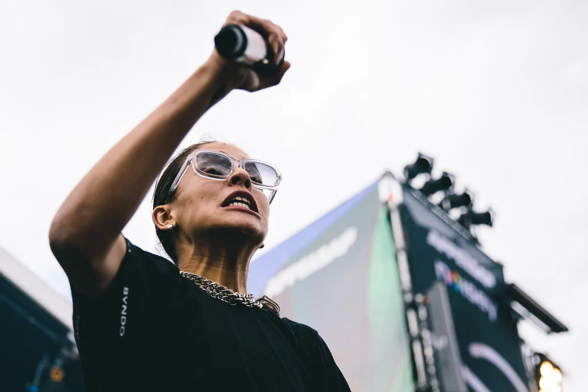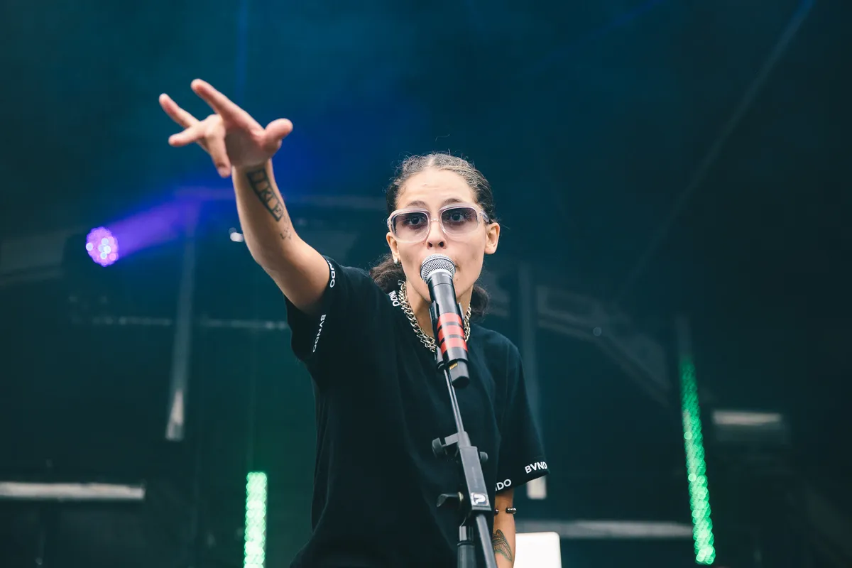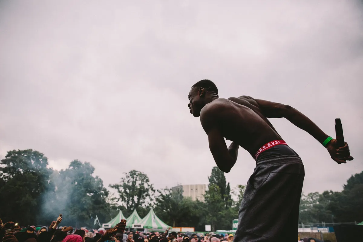 Niet dat het een slechte editie is, hoor, er is nog genoeg te genieten in het Flevopark. Bokoesam bijvoorbeeld, de jongen die al jaren een graag geziene gast is op Appelsap. Hij wordt ieder jaar wat weirder, durft zijn feminiene kanten te omarmen op de allercoolste manier en bracht dit jaar eindelijk zijn debuutalbum uit. Deze thuiswedstrijd is mogelijk een van zijn beste shows ooit: Bokoeyoncé durft het hele hoofdpodium te pakken en gooit zijn benen elke paar regels wel weer de lucht in voor een imposante karatetrap. Hij heeft Yung Nnelg mee voor ‘Whoadies’, Ray Fuego voor ‘Zp$’ en Idaly voor ‘Shawty’, maar New Wave-hit ‘No Go Zone’ en zijn eigen ‘BBB’ werken nog beter. De autotune doet zijn lievige zoetgevooisde dancehall-liedjes bovendien ontzettend goed, en hoe cute: hij trekt halverwege een piepjong jochie met een SMIB-shirt het podium op. ‘Gaan we lit?’, vraagt Bokoesam. ‘Wat?’, reageert die verlegen. ‘Zeg maar ja.’ ‘Ja!’, waarop het knulletje heerlijk klungelig heen en weer danst.