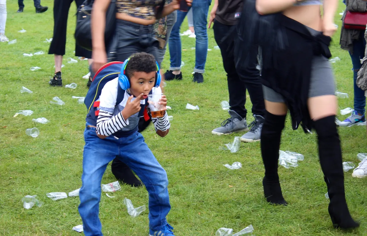 Meteen als je het Flevopark in stapt, zie je het al. Kinderen rennen rond, spelend en gillend van plezier of trots met een zelf gekochte zak patat. Iets verderop bij het hoofdpodium verrast SMIB’s Ray Fuego in sloopkogelstand opvallend veel middelbare scholieren al met een behoorlijk goede binnenkomer. Die aankomende mixtape van hem is er een om naar uit te kijken en de show zorgt al vroeg op de dag voor de eerste pits. Weer iets verder staat een groepje typische Amsterdamse techno-types van rond de dertig bij het Redlight-podium te dansen. En aan de randen van dat veldje zitten weer wat oudere buurtbewoners rustig op de bankjes te roken, en te kijken naar de Amsterdammers die vanuit alle buurten, uiteraard veel Oost, hun hipste pak uit de kast hebben getrokken om goed voor de dag te komen. Op de meeste festivals heb je het idee dat er één groep bezoekers zijn stempel op het festival drukt of probeert te drukken, hier loopt alles door elkaar.