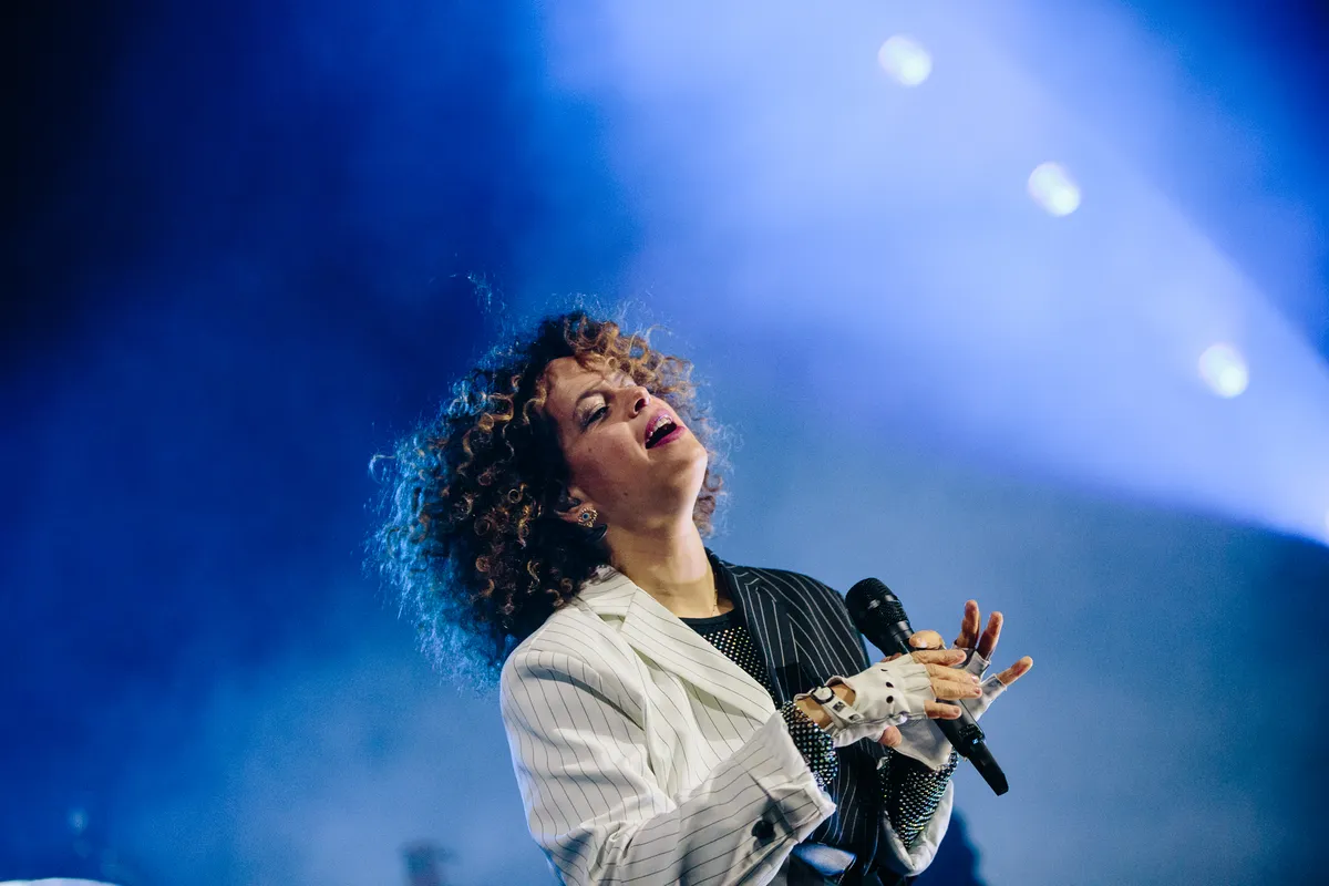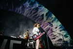 Broer Will Butler, die ooit in de nok van de tent klom bij die legendarische Lowlands-show en hetzelfde nog eens zou herhalen, is er niet meer bij. Die stapte al begin dit jaar uit de band. In plaats daarvan hebben ze nu een overenthousiaste percussionist en hypeman meegenomen die in ‘Here Comes The Night Time’ hysterisch op een fluitje loopt te blazen en telkens weer zijn armen in de lucht gooit om de mensen vooraan op te fokken (en daarmee soms net effe de plank misslaat).