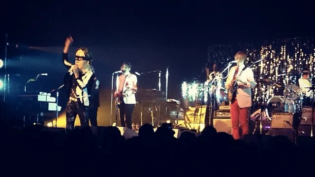 Wake Up is zo'n beetje het enige oude liedje dat de band vanavond speelt. Arcade Fire heeft een dubbelalbum om uit te putten, en bij deze korte en kleinschalige tour als The Reflektors doen ze dat volop. Na een redelijk wervelend begin volgen twee door Régine Chassagne gezongen oudjes. Ze is jammer genoeg live niet beter gaan zingen, en haar rol als hysterisch kindmeisje is ze nog wat verder uit gaan diepen, onder meer met fluorescerende slingers. Wel is eens te meer duidelijk dat Sprawl II van de vorige plaat het overgangsnummer was naar het nieuwe geluid, waarin indie en disco soms samen komen. Daarna volgt een wat taai stuk met de mindere songs van Reflektor: het richtingloze Supersymmetry, de dub van Flashbulb Eyes, het vlakke It's Never Over (Orpheus). Heel bewust worden hits van de vorige platen achterwege gelaten ten faveure van dit nieuwe werk. Tijdens de festivaltour die komend jaar juni onze kant op komt gaat dat vast anders. Vanaf nieuwe single Afterlife is de kracht en de concentratie weer helemaal terug. "Can we work it out? We scream and shout 'till we work it out."