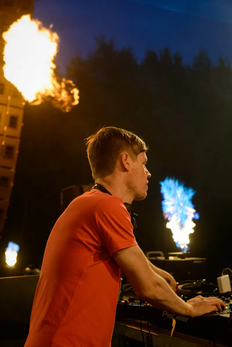 De set wordt steeds melodieuzer en daarmee meeslepender en culminerend in een heftige finale, hoewel je toch het gevoel houdt dat de handrem er nog een beetje op zit. Die handrem, dat nét niet geven en je publiek tot het uiterste uitdagen; daar zit ook de kracht van zijn set. De schaarste maakt de climaxen des te groter. Het is zoeken naar een minpunt, maar we komen niet verder dan een stage manager die een kwartier van tevoren al aangeeft dat je nog maar 10 minuten hebt… Daar blijkt echter een goede reden voor, want na de voortijdige stop - terwijl de beats van Carl Cox en Adam Beyer door de bomen wapperen, begint Voorn nog aan een toegift. Bij het vuurwerk zet hij een melodieuze laatste track en zijn zonnebril op, om dan koeltjes af te ronden, iedereen achterlatend met dat brandende gevoel: waar is de after en hoe - bij de baard van de profeet - komen we daar?