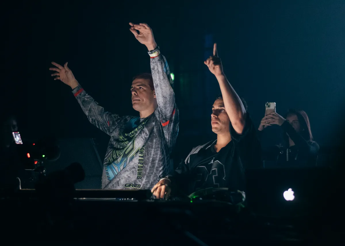 Lichte paniek bij de Spaanse TikTok-influencer die me zo aardig miserable noemde en het nu zelf ineens is. De security heeft zojuist het backstage podiumpje naast 999999999 en het publieksdeel achter het duo leeggeveegd. Ja maar. Nee, nu niet. Ze begint te foeteren, want no phone policy of niet, hoe moet het nu met haar sociale media? 999999999 wil duidelijk niet te veel pottenkijkers of hete lichamen in de buurt. Het duo groeide net als I Hate Models na covid in no time uit tot headliners van formaat. Dat doen ze met een Ableton Live set waarin ze hun overstuurde acid vermengen met opvallend veel eigen edits van dance classics, van ‘Pump Up The Jam’ tot ‘Harder Better Faster Stronger’ en tot besluit zelfs Underworld’s ‘Born Slippy’. Je vraagt je toch af of het echt nodig is, of de zaal niet net zo hard los zou gaan als de set enkel uit hun eigen grimmige acid zou bestaan?