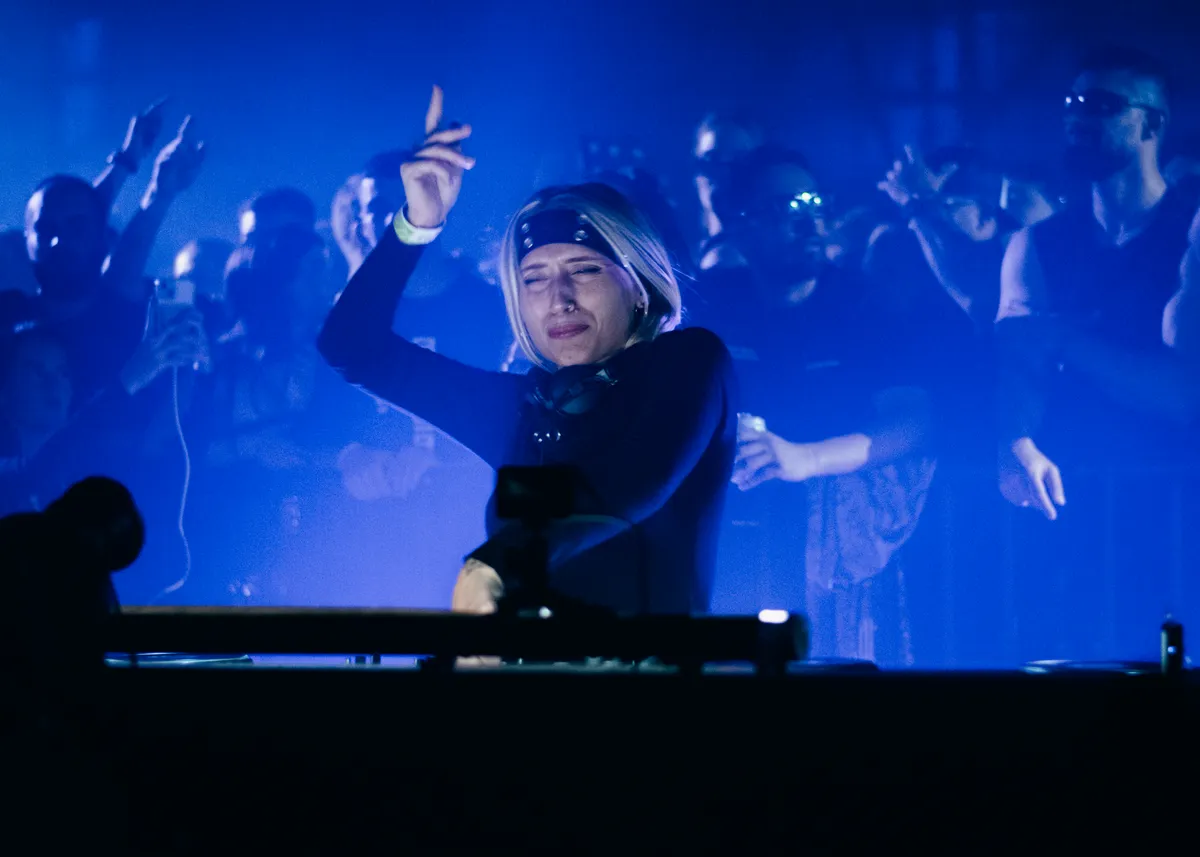 Bij Novah hoor je in een pulserende techno groove opeens een typische trance bassline opduiken. En daarna een volbloed handen-omhoog-Goden-melodie, dan heel even een hardstyle kick, zo een waarbij een hoog piepgeluid als een schreeuwend varkentje op de hielen gezeten wordt door een moordlustige bass. Maar voor je het woord hardstyle (zie je wel!) hebt kunnen uitspreken is die kick alweer weg en zitten we terug in de smerige lompe techno, uiteraard nog altijd gebracht met een glimlach. ‘You look miserable’, zegt een TikTok influencer type met een Spaanse tongval tegen uw verslaggever. Ze draagt een zwart ultrakort broekje, een zwarte top met glimmertjes en haar zwarte haar in twee kittige knotjes. Goh, dat valt wel mee toch? Ik sta me hier aardig te vermaken met de wild dansende mensen achter de dj, die hun vuisten opsteken naar Novah.