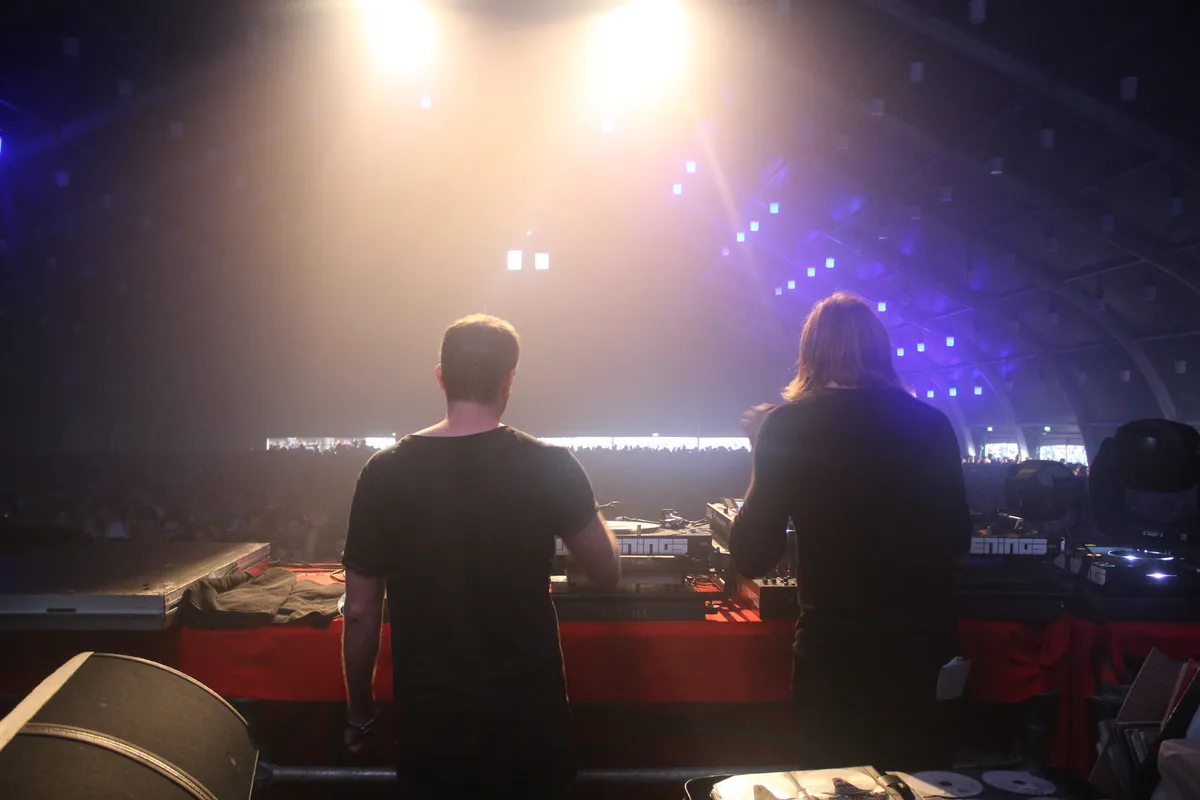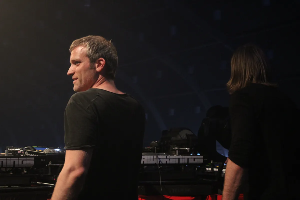 De muziek van deze Duitsers is gestript van enige vorm van jolijt. Het is desolaat, naargeestig, beklemmend donker, op het onaangename af. De duistere sound is enorm fascinerend en grijpt je direct bij de lurven. De mannen zelf zijn overigens alles behalve zo zwaarmoedig als hun muziek: het is achter het podium een komen en gaan van bekenden die even gedag komen zeggen, en allemaal worden ze door D&K begroet met een lach en omhelzing. Klock is duidelijk de leider en heeft de touwtjes stak in handen. Een momentje voor de MC? Even geduld nog. Vuurwerk? Dat kan over drie tracks, beslist Klock. Het professionalisme druipt ervan af, zo erg dat het bijna griezelig is. Deze mannen weten, mede dankzij hun urenlange marathonsets in de Berlijnse Berghain, precies wat ze doen. Bij sommige dj’s heb je het gevoel dat ze af en toe maar wat doen, met hagel schieten, of moeite hebben met de lijn in hun set. Dettmann en Klock weten precies waar ze heen willen en lijken soms misschien wel tien tracks vooruit te kunnen denken. Heel erg knap, en laten we ook vooral hopen dat er nooit meer een boeker tussen hen en Awakenings in komt te staan, want dit duo hoort op dit festival thuis.