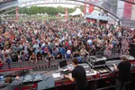 Maar voordat het zover is pikken we eerst nog even een staart Extrawelt in area C mee. Deze mannen brachten al een tijdje niets meer uit (laatste EP Raum in Raum is een dik jaar oud), maar toch blijven de eveneens Duitse mannen onverminderd populair op de Nederlandse podia. Het duo maakt een soort combinatie van spacetechno, electro en deephouse. Erg organisch en met een heel eigen, kenmerkende sound, en daardoor moeilijk in een hokje te plaatsen. Ze releasen op credible labels als Cocoon en Border Community maar zijn live zo’n toegankelijke act dat ze een breed publiek kunnen aanspreken. Vandaag ligt er een gespreid bedje voor ze klaar, want nadat area C al de hele dag is opgewarmd hoeven ze alleen nog maar in te koppen. En dat doen ze, Arne Schaffhausen en Wayan Raabe. Terwijl die eerste zich bezig houdt met het live inspelen van verschillende instrumenten, tweakt die tweede alle binnenkomende geluiden met een gigantische mengtafel, waarmee hij geluiden aan laat zwellen en subtiel weer laat verdwijnen. Fernweh (2006) en Soopertrack (2005) zijn hier vandaag de hits, en dat geeft ergens ook wel weer te denken: wil een plekje op Awakenings 2014 gerechtvaardigd zijn, dan wordt het wel weer eens tijd voor nieuw werk van Extrawelt.