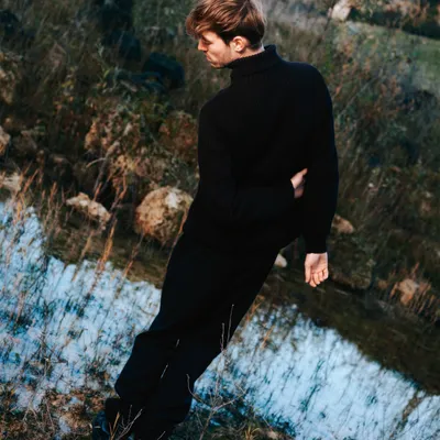 Niet alleen zijn vader inspireerde hem, maar ook zijn opa. ‘Hij schildert magisch realistische schilderijen met olieverf.’ Hij wijst lachend naar een schilderij in zijn kamer. ‘Deze is heel minimalistisch, maar meestal zijn het naaktmodellen die zich bevinden in een vaag landschap met vliegende kastelen, of ergens in de wolken of op een rots. Als kind kwam ik bij hem in het atelier, dan gingen we samen schilderen. Ik kom nog elke maand bij mijn opa en oma om een hapje te eten, dan praten we ook over kunst maken. We laten ons allebei erg inspireren door andere kunst, maar vooral door landschappen om ons heen. Ik wandel veel in de natuur, en zie dat ons werkproces ook vergelijkbaar is. Hij begint met vage vormen door olie op zijn doek te gooien, ik begin ook altijd met de meest vage abstracte texturen en schilder er dan steeds meer kleuren bij. Ik wilde met mijn album heel graag een soort droomwereld schetsen. En toen ik naar zijn schilderijen keek, dacht ik: wow, ik zie zoveel gelijkenissen!’
