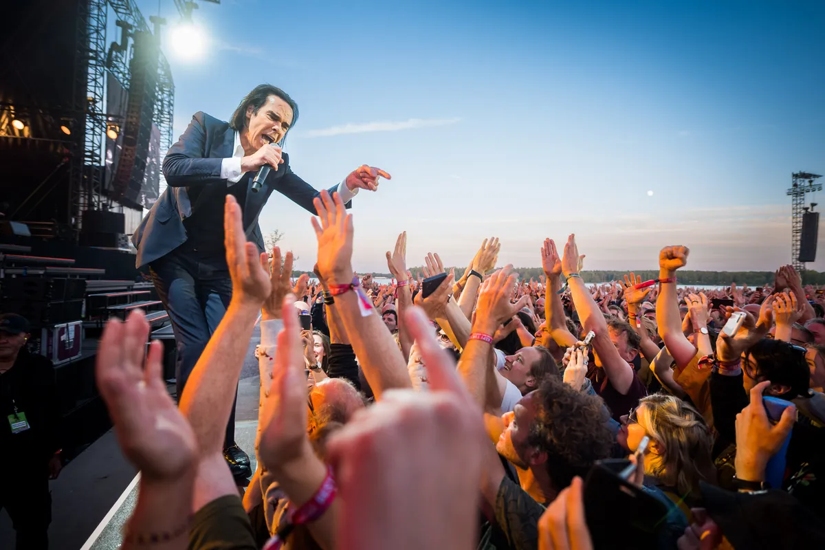 Iedereen hier op het veld weet het, maar Nick Cave wil het er niet over hebben. Niet over de dood, niet over zijn kinderen. En ook weer wel, impliciet en met een geraffineerde vervlechting van thema’s en mantra’s uit zijn hele oeuvre. Zijn antwoord op de olifant op het grote veld van Best Kept Secret: het leven.