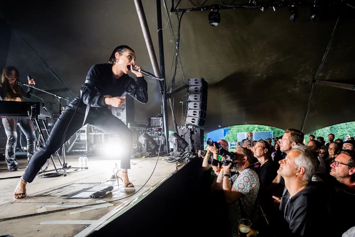 Het ene moment shuffelt ze op de elektronische beats als een kickboxer, laat ze haar vuisten hoekig door de lucht klieven, dan weer steigert ze met haar bekken of kronkelt ze juist elegant en ontzettend sexy over het podium. De seksualiteit spat er vanaf, maar laat één ding duidelijk zijn: Beth is in totale controle, als een duistere pop-dominatrix