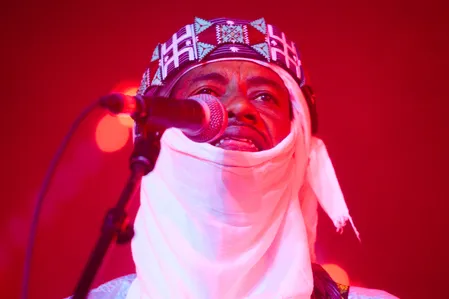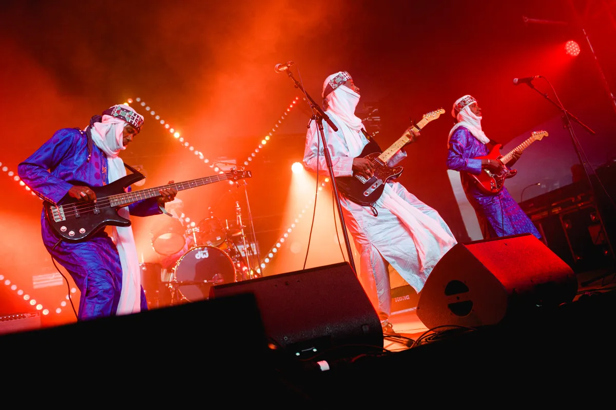 Nigerese desertbluesband in het hoekje van Mdou Moctar en Bombino. Gesluierd en al. Door die riffjes klinkt Etran de L’ Aïr alsof er een surfersdorpje middenin de Sahara is opgetrokken. Tent op stelten, en dan schemert ook dat verleden als bruiloftsband door. (MM)