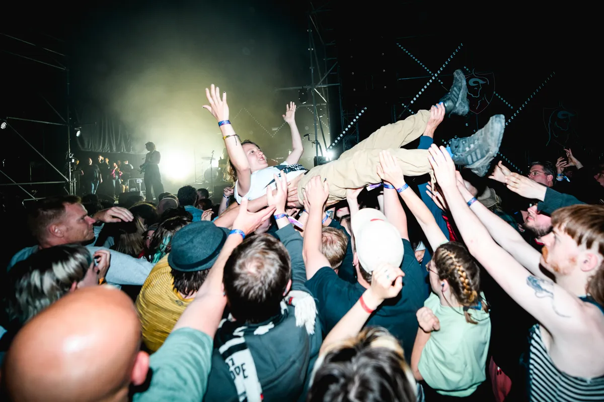 Voor het podium zijn mensen tot op hun onderbroek bezweet van het trage moshen, maar de muziek van Tramhaus is eigenlijk nog geschikter voor die andere archetypische rock ‘n roll-handeling: languit ruggelings over de handen van de mensen glijden, twee vuisten gebald.