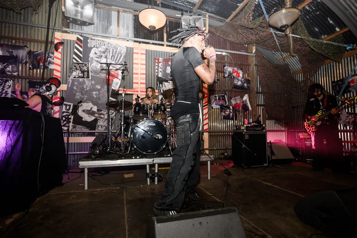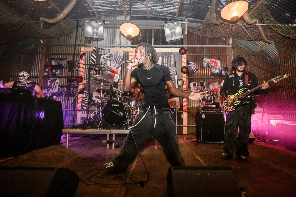 Rapper Deijuhvs en zijn punkband plus dj springen in de rondte springen als een stel kangoeroes. Maar de bedoeling van dit optreden wordt niet helemaal duidelijk: er is een volledige band aanwezig, maar de backing track staat zo hard dat je nauwelijks kunt horen wat er live wordt gespeeld en wat niet. En dan zingt of rapt Deijuhvs ook nog eens nauwelijks mee. Het lijkt een beetje een puinhoop, maar het publiek slikt de show als zoete koek, elkaar gemoedelijk door de Casbah smijtend. (TW)