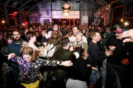 Wanneer de ene crowdsurfer de andere de hand schudt - voor de duidelijkheid: terwijl ze beiden door de lucht zweven! -, weet je dat het wel snor zit. En dat is eigenlijk al twee decennia het geval bij Osees. Die mannen zijn alweer toe aan studio-album nummer 28 (ze lopen er nog drie voor op King Gizzard!), en zijn altijd in een wat kleiner muzikaal spectrum blijven steken dan de Gizz (maar waren wel van grote invloed op die band). Psychedelische, vunzige, nasty garagerock wat de klok slaat, met veel ruimte voor jams. Die twee wilde drummers midvoor blijven gewoonweg geweldig, ze hebben dezelfde schwung maar leggen net effe andere accenten. En John Dwyer op links, de woesteman die op zijn gitaar staat te beuken alsof-ie een reusachtige zandworm temt, hoog in de lucht rochelt en zo heen en weer zwiept met zijn nek dat je je continu afvraagt of hij hier geen whiplash aan overhoudt. Die rock ’n roll-furie slaat natuurlijk direct over op de al goed dronken The Secret-tent. Dus gaat het hart bij oudjes als ‘Toe Cutter - Thumb Buster’ tekeer als een fladderende parkiet gevangen in je borstkas.