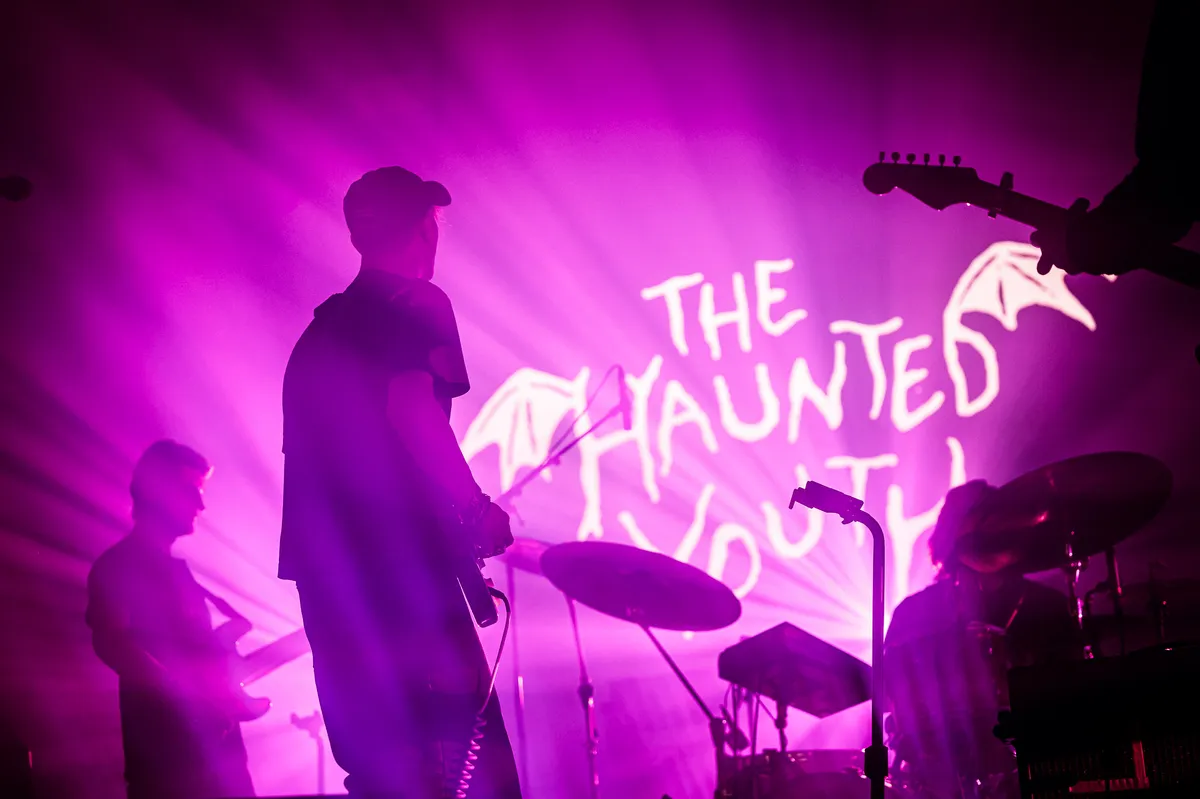 We blijven erbij: The Haunted Youth is de beste nieuwe band van België. Het is ongegeneerd zwelgen bij Joachim Liebens: hij zingt over je terugtrekken in je koppie, willen oplossen in het grote niets. ‘I’m better off dead sometimes’, klinkt het. ‘I just wanna be gone.’ En nog steviger: ‘I feel like shit and I want to die.’ Deze doodswenspop is soms zó zwaarmoedig dat je – serieus – zou kunnen overwegen om op het beeldscherm te verwijzen naar hulplijn 113. ‘I love you, don’t kill yourself’, flitst er even later inderdaad voorbij, terwijl Liebens met zijn rug naar het publiek in een doomy instrumentale riff gaat hangen. Hij verstopt zich achter zijn petje, achter zijn plukken haar en vaak ook in een dikke mist.