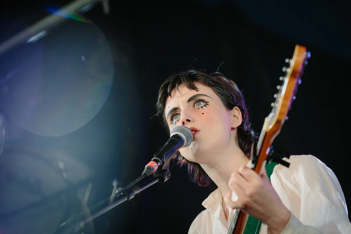 Oh oh Annie Clark, eigenlijk ben je een actrice geboren in het lichaam van een moderne gitaarheld. Of nee, is dat een gitaarheld geboren in het lichaam van een Hollywoodactrice? Die theatrale opkomst (door een verlicht poortje!), haar hoekige choreografieën in mantelpakje, en natuurlijk haar gezichtsuitdrukkingen, soms strak en dan weer compleet verwrongen terwijl ze piepende feedback uit haar gitaar wringt. De beheersing die ze uitstraalt heeft een welhaast bevreemdend effect.