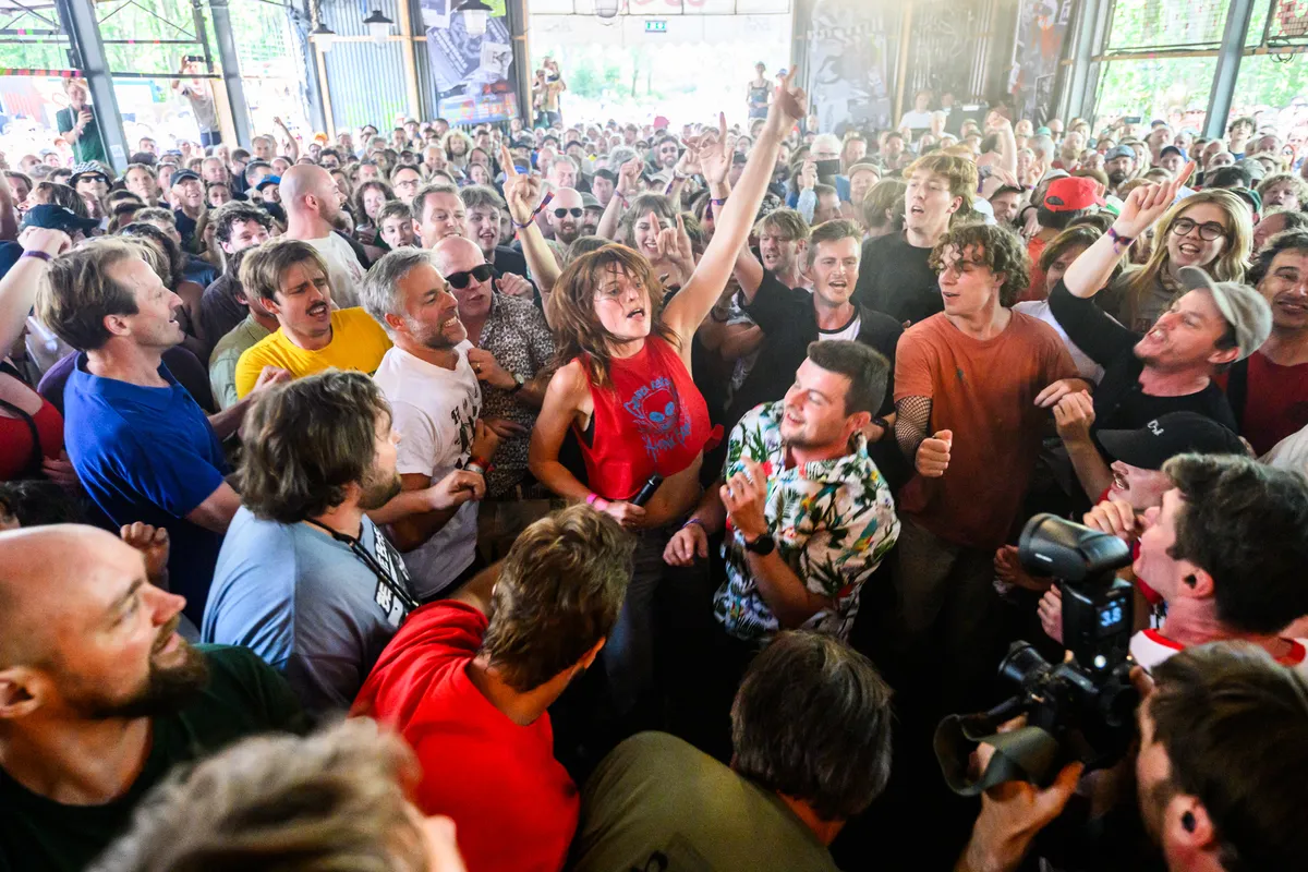 Verder is Magdalena Bay een verademing op deze ouwezielenzondag. Op de een of andere manier belandde hun vervreemdende synthpop en schmierende ABBA-esque space-disco na een jarenlange carrière in de marge opeens in het popgirlie-algoritme, waardoor ze razend populair zijn geworden en de coolste kids hier vooraan de teksten beter kennen dan elkaars telefoonnummers. Wel een bummer: ze hebben niet het ontregelende Ik Mik Loreland-decor mee waarmee ze onlangs in de Melkweg speelden, en er lijkt ook wat mis te zijn gegaan met de visuals, die er na een minuut al uit klappen. Computer says no. Maar gelukkig transformeert Tenenbaum al gauw in een zonnebloem, doet ze een creepy masker voor in de onverwachte hardrock-breakdown van ‘Tunnelvision’ en heeft ze meer outfits bij zich dan je nodig hebt om een festivalweekend te overleven. Vrolijke show!