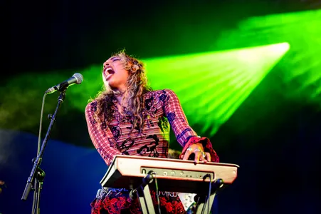 Tegenwoordig wordt elke show met een vleugje psychedelica al snel een ‘trip’ genoemd, maar bij Dummy is dat label meer dan terecht. Het vijftal uit Los Angeles beschikt, naast hun hoofdinstrumenten, elk over een extra synthesizer. Voeg daar een orgel, een arsenaal aan percussie-instrumenten en een grote trommel voor de zangeres aan toe, en je hebt een indrukwekkend muzikaal strijdtoneel. De visuals zijn een sfeervolle aanvulling, maar toch merk je dat het publiek op deze vroege zondagmiddag moeite heeft om zich volledig over te geven aan de lange soundscapes. De spanningsboog blijkt nét iets te kort voor een complete onderdompeling.