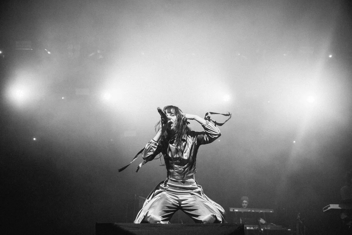 Zou je ooit je hits als laatste songs op een album zetten? Nee toch? En je setlist? Die sluit je juist het liefst af met vuurwerk, toch? Daarom is het vaak zo’n slecht idee om je album integraal te spelen. Toch is dat precies wat Magdalena Bay doet vandaag, ze spelen het vorig jaar verschenen Imaginal Disk van kop tot staart (en slaan dus ook hun grote Tiktok-hit ‘Killshot’ brutaal over). ‘The Ballad of Matt & Mica’ is gelukkig een mooi uitzwaailiedje, dat tekstueel weer terugverwijst naar openingsnummer ‘She Looked Like Me!’. Mica Tenenbaum, de fladderige nimf van een zangeres, heeft er speciaal een setje witte engelenvleugels voor aangetrokken en zwiert over de stage.