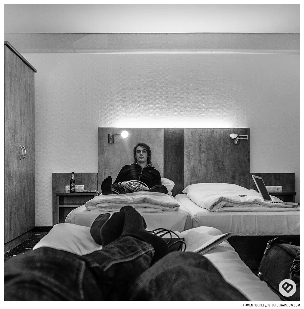 Tourverslag deel 2. Joh! Dat had ik nou niet gedacht. Ik ook niet. Laten we daarom wederom beginnen bij het begin. Dat is wederom ook weer net zo makkelijk. Na kosten en zeker ook moeite gespaard te hebben, en uiteraard na veelvuldig gestalk, wilde de ons aller welbekende en bevallige Vino Fraus van der Voort uit Leiden ons wel naar Düsseldorf brengen. Waarvoor hulde en een sticker. Vino bedankt. Alwaar ons vliegtuig zou vertrekken rond 1 uur.