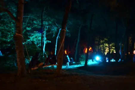 Rond de toren bij de 3FM-studio gaat iedereen zijn eigen weg. Op naar Stage 3 voor het laatste restje Thomas Azier. Maar nog meer trekken mensen richting de bossen aan de andere kant. Dikke lampen tekenen langwerpige schaduwen over bomen en gras. De opgeknoopte schommels zijn bezet met festivalgangers die het even rustig aan willen doen en zich spoedig richting campingtent zullen begeven. Verdwaalde neonverlichting en mensenmassa's. Wil je gek doen? Stage 4, place to be. Daar kun je hakken op gabber. Gewoon omdat het kan.