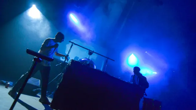 Vergeleken met de hectische, experimentele noise van Black Dice opereert Fuck Buttons veel gestructureerder. Hung en Power bouwen die soundscapes zorgvuldig laag voor laag op. Dat doen ze uiterst geduldig. Het Olympische anthem Surf Solar is een van de beste voorbeelden; waar een vocal en een technosample (meer dan de beat) het ritme bepalen, terwijl die synthesizer-lagen je onverbiddelijk meezuigen. De enige manier om daar niet volstrekt in op te gaan, is als er twee dwazen voor je door die noise en je oordoppen heen weten te lullen. Afijn, een paar stappen verder wijst een zekere Tilburger schrijver dezes erop dat je een concert van Fuck Buttons moet ondergaan en dat doe je dus zonder doppen. Goed punt, en de resterende veertig minuten verliezen we ons volledig in de scapes, die een zeldzaam diep euforisch gevoel teweegbrengen. Daarbij geholpen door een visueel spektakel dat knap verbloemt dat we op het podium niet de meest uitbundige act aan het werk zien.