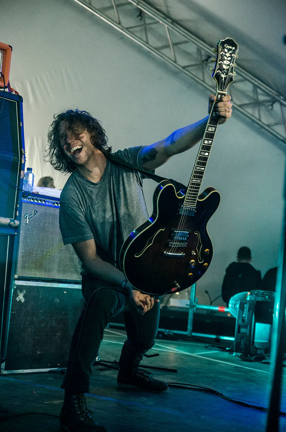 In het begin klinkt het alsof er meerdere versterkers kapot zijn, maar dat kan best de bedoeling zijn. Als je al gaat vragen hoe lang je nog mag spelen en je krijgt geen antwoord, speel dan als de donder verder. Want zoals Spunt zelf al aangeeft: het is wel een korte set. Uiteraard eindigt die met Randall op zijn rug spelend in het publiek. Gaaf, maar een zetje van het publiek was leuk geweest.