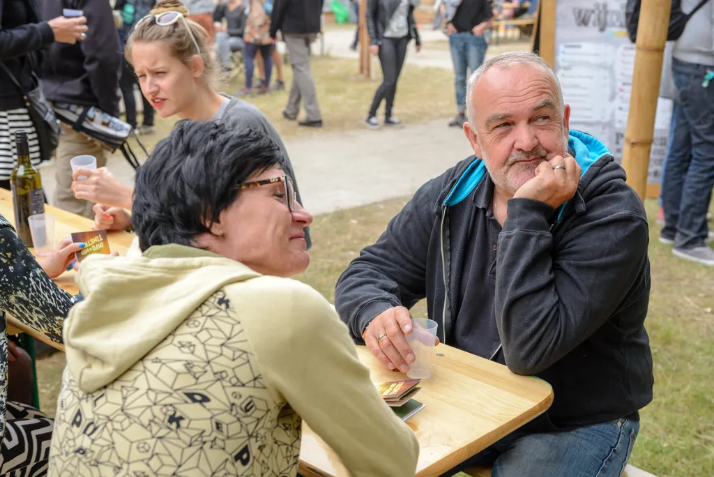 Aan de andere kant van hetzelfde tafeltje drinkt een Belgisch stel een rosé. Een GdeG Gris, om precies te zijn. Best Kept Secret trekt een boel Belgische bezoekers, de Belgische grens bevindt zich dan ook maar een klein half uurtje van het festivalterrein. Als zij dezelfde vraag voorgeschoteld krijgen, moeten ze toch even goed nadenken. "Eigenlijk komen wij alleen voor de Pixies." Maar na even diep nadenken proeft mevrouw toch wat Samaris in de wijn: "Hij is heel zacht en soepel, dat past wel bij de lieflijke muziek van Samaris."