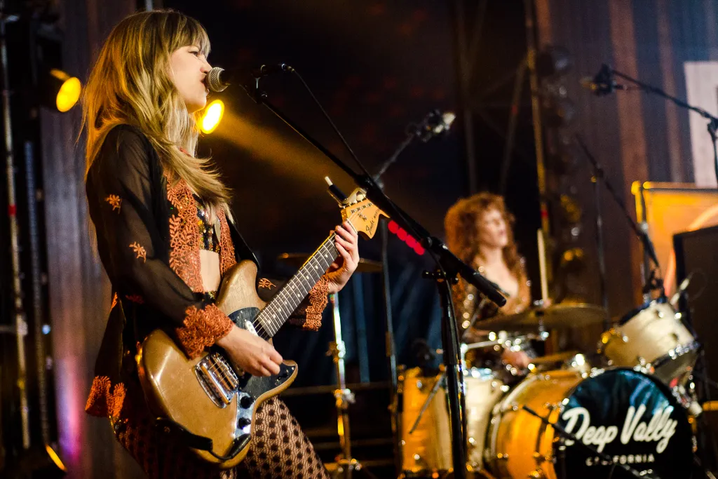 Het verhaal gaat dat het duo van Deap Vally elkaar heeft ontmoet tijdens een cursus haken in Los Angeles. Als je de muziek van deze dames hoort, zou je niet zeggen dat ze zich in het dagelijks leven met handwerkclubjes bezig houden. De sexy powervrouwen komen het podium op in glitterende niemendalletjes, zonder schoenen en met panty’s zonder tenen. Ze beginnen meteen goed met Baby I Can Hell. De mannen op de voorste rij kijken hun ogen uit, wanneer zangeres Lindsey Troy haar ‘vestje’ ook nog uittrekt na een paar nummers.