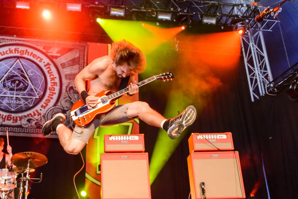 Een aanbeveling van opperstoner Josh Homme (Queens of the Stone Age) in het programmaboekje leidt natuurlijk tot hooggespannen verwachtingen voor het Zweedse Truckfighters. Hun sound wordt omschreven als klassieke stoner- en woestijnrock en de vergelijking met bands als Kyuss en Dozer is dan snel gemaakt. Gas erop, dus. Ondanks dat Zweden topografisch gezien héél ver van wat voor woestijn dan ook af ligt, komt de sound van het trio wel aardig in de buurt van die van hun genregenoten. Maar we horen ook invloeden van metal en psychedelica.