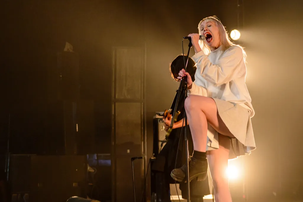 Deze dansbare synth-pop band (zonder synthesizers) uit Berlijn is al een hele opvallende verschijning op zich. De Japanse gitarist is gehuld in een lang, donker gewaad met een stel zwarte kaplaarzen eronder, de drummer is een typische gothic-Schot met lange rode lokken en de frontvrouw is een schattig blond poppetje gekleed in een oversized-trui en een kort rokje alsof ze net van haar balletles komt. Maar onder deze schattigheid schuilt een echt podiumbeest. Bij aanvang staat de überschattige zangeres Rosie al op het podium op en neer te springen als een hyperactieve aerobicsinstructrice.
