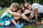 Gerard en Sander uit Maassluis zitten voorbij de entree op een heuvel even bij te komen. Sander is er sinds gisteren, Gerard besloot op het laatste moment te komen en hoorde pas op het terrein voor het eerst dat er met chips wordt gewerkt. Hij beschouwt het niet als hinderlijk: "Het gaat snel en je krijgt je saldo te zien als je afrekent." Over de statiegeld op bekers zijn beide ook te spreken. Sander: "Het valt meteen op hoe schoon het hier is. Wel verkijk je je op de eerste keer als je afrekent hoe weinig saldo dan overblijft, maar dat is natuurlijk eenmalig." Hebben beide heren dan echt niets aan te merken? Gerard: "Ik kreeg één keer een foutmelding bij het scannen, maar daarna werkte het weer."