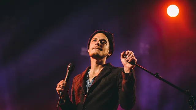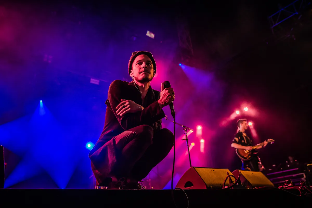 Nou, nee. Hij lijkt eerder een hele verdrietige Tom Smith. 'Veel van deze liedjes zijn sad songs', zegt ie bijna verontschuldigend, ‘maar we zijn fantastisch dankbaar dat jullie er zijn.’