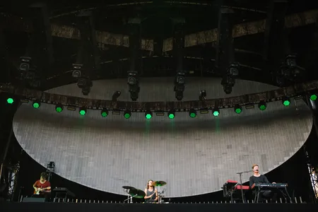 Dan wordt hij vergezeld door drummer Ben Assiter en gitarist Rob McAndrews. Er weerklinken meerdere orgastische kreetjes uit het publiek wanneer de eerste akkoorden van ‘Limit To Your Love’ uit de speakers worden geblazen. Letterlijk geblazen, want de bas staat zó hard, dat het strandzand er bijna van opstuift. Ook bij ‘Timeless’ krijg je een bombardement van klanken over je heen gespoeld. Blake’s stem valt daardoor een beetje in het niet, maar overweldigend is het wel. Het zijn net die noten - die je voorheen door je krakkemikkige oortjes niet hebt kunnen horen, die het hem doen. Er ontstaat zo een groot contrast tussen de ingetogen liedjes, en de rauwe, bombastische technostukken.