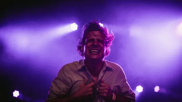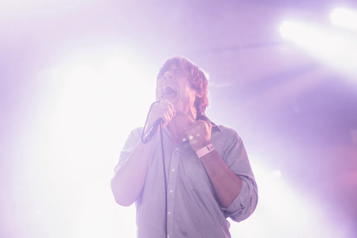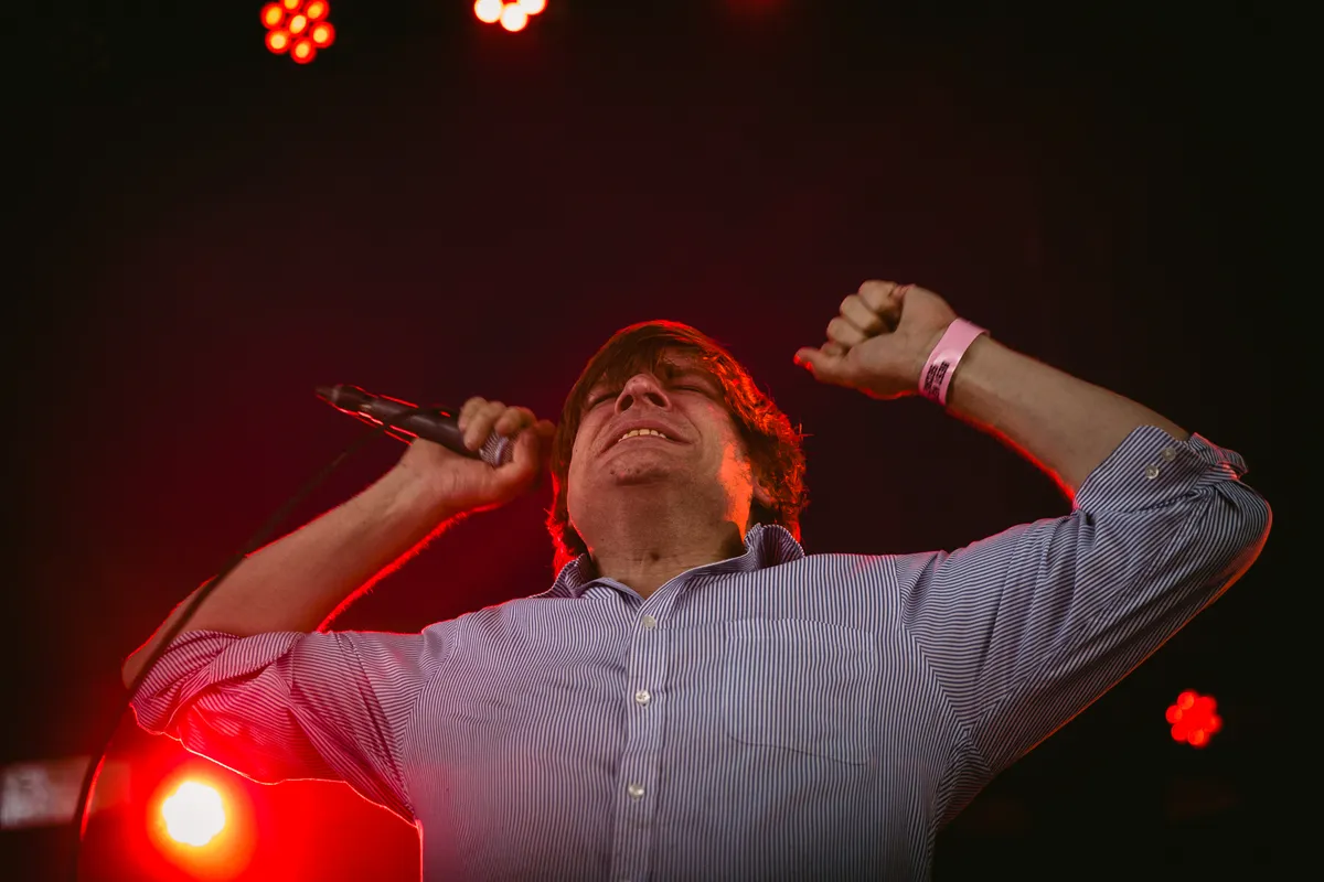 Als hij tegenover je in de safari-jeep zou zitten, zou je zo door hem heen kijken, met zijn saaie overhemd en vale spijkerbroek. Maar op het podium kun je niet om hem heen. Vroeger trad de cultzanger steevast op met een tape, nu staat hij met band op het podium. Die zien er al net zo normcore uit als hijzelf, en geven de gothische songs net wat extra drive.