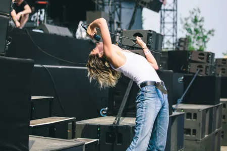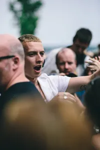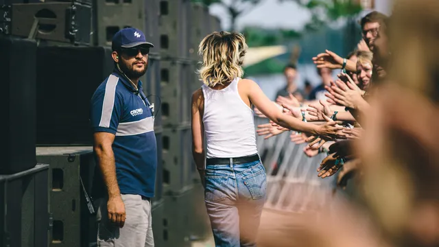 Gaat ze nou… Ja hoor, Rowsell springt na het laatste nummer van het podium af, langs de barrier richting het water. Ze deelt wat high-fives uit, krijgt een biertje en springt zo hoplakee het water in.