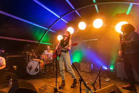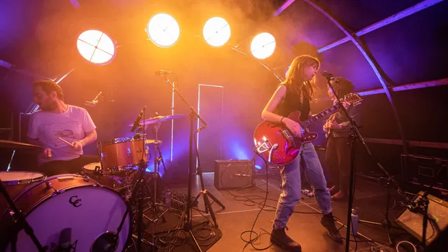 Er klinkt applaus in het bos. Zojuist is de eerste portie sticky chicken wings over de toonbank gegaan. Natuurlijk is dat een open doekje waard! Dat er maar vele zullen volgen. En terwijl de meeste mensen rustig een plekje zoeken op de camping, staat het nieuwe podium Seven al vol voor Angie McMahon. Wie? Een Australische die eerder al eens met een negenkoppige soulband optrad, maar die hier vandaag als indietrio aantreedt.