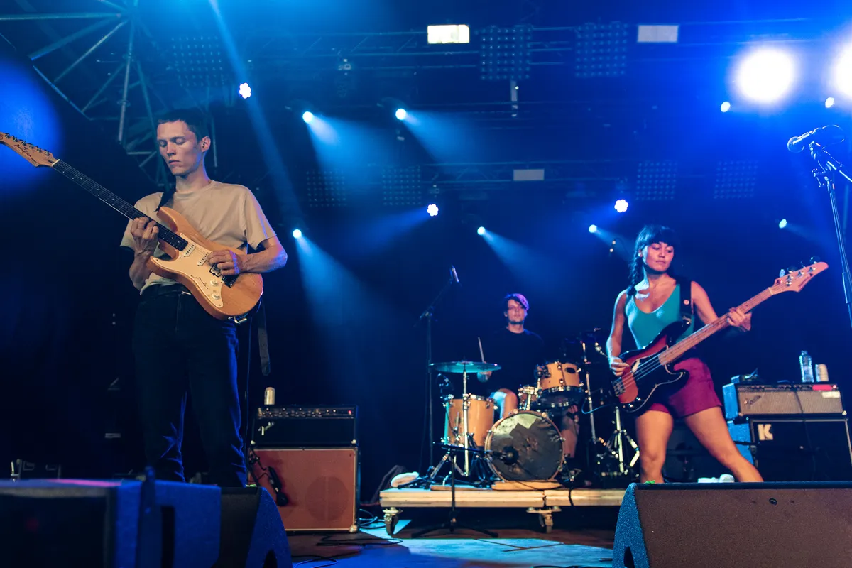 Niet voor niets begint onze tekenaar daarna aan gitarist Michiel Klein (Adept, Eklin), wiens spitse gezicht iets mysterieus heeft. Hij speelt ingetogen maar wel heel uitgesproken, en zijn bijdrage is het geheim van Lewsberg. Terwijl de andere drie in een loop gaan hangen soleert hij, heel subtiel, atonaal en toch echt oprecht mooi. Een ander moment laat hij zijn solo uitmonden in één enkele noot op repeat. Zo zitten er in die ogenschijnlijk traditionele lowfi indieliedjes steeds kleine ideetjes die de aandacht vangen.