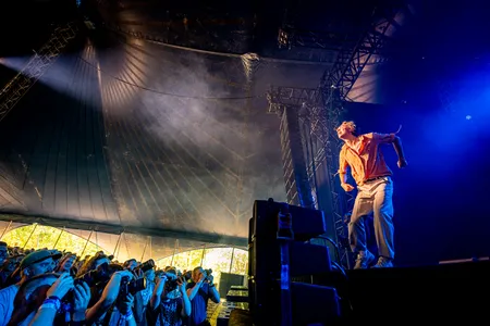 Alex fucking Rice. De frontman die elke band wenst. De introtape met ‘Let Me Entertain You’ van Robbie Williams is aan en Rice stormt het podium op, slaat in de lucht, schreeuwt in het niets en in de drie kwartier die volgt blijft hij koolhydraten verbranden. De Brit houdt hele rants zonder microfoon terwijl hij op de voorste rij loopt. Jut constant op. En blijft likeable. Volgens hem is dit de grootste menigte waarvoor Sports Team heeft gespeeld.