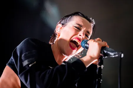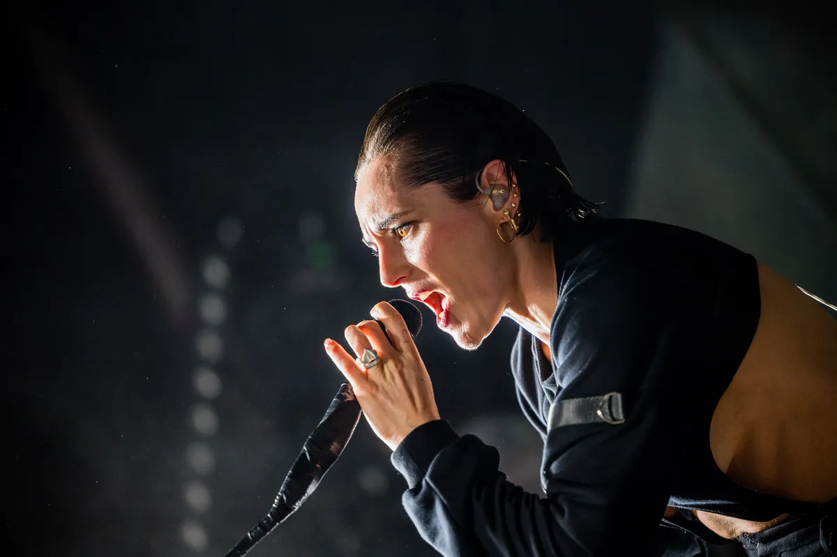Haar twee bandleden zien er ook uit alsof ze regelrecht uit de darkroom zijn komen kruipen. Achter synthesizers en drumcomputers, want de gitaren van Savages hebben plaatsgemaakt voor een veel elektronischer geluid. Het is Fever Ray meets Nine Inch Nails, duistere techno-pop met een industriële zwaarte. Ze brengt zelfs een kleine ode aan de band van Trent Reznor met ‘Closer’, een synthpopklassieker van jewelste. Het is een track die precies aansluit bij haar repertoire vol songs over sensualiteit en seksualiteit, over het machtsspel dat in seks besloten ligt. ‘I wanna fuck you like an animal,’ gromt ze, een zin die vanuit de tent luidkeels wordt terug gesmeten.