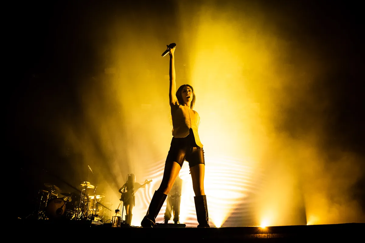 De wonderen zijn de wereld nog niet uit, want ze is er, in levenden lijve, en je moet je oren wel héél erg spitsen, wil je horen dat ze niet optimaal zingt. Hoogstens legt ze niet evenveel kracht in haar uithalen, maar nog steeds bereikt Caroline op haar zwakste dag een astronomische hoogte waar ook de sterren jaloers op zijn. Dan is de show een kwartiertje korter dan gepland, maar worden alle liedjes wel ontvangen als hits: TikTok-viral 'So Hot You're Hurting My Feelings', onsterfelijkheids-2-stepanthem 'I Believe', de downtempo balearic van 'Blood and Butter' (zonder doedelzaksolo maar wel met gitaar), de dancehall-met-onzintekst 'Bunny Is A Rider' (inclusief catchy fluitje), maar ook de ijzingwekkende sirenezang 'Ocean Of Tears' van haar vorige plaat wordt hier warm onthaald. Met die liedjes heeft ze een totaal eigen eilandje geschapen, en die beeldtaal zie je ook weer terug in de show: een zonsopgang die 'Sunset' baadt in zachtrood ligt, op de schermen grootse vulkaanuitbarstingen, brandend verlangen verbeeld als natuurkracht. In andermans handen kunnen zulke gebaren best kitscherig zijn, Caroline Polachek komt daardoor juist des te dichterbij. 'I've never felt so close to you', zingt ze, en Best Kept Secret brandt van verlangen.