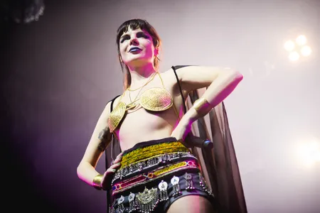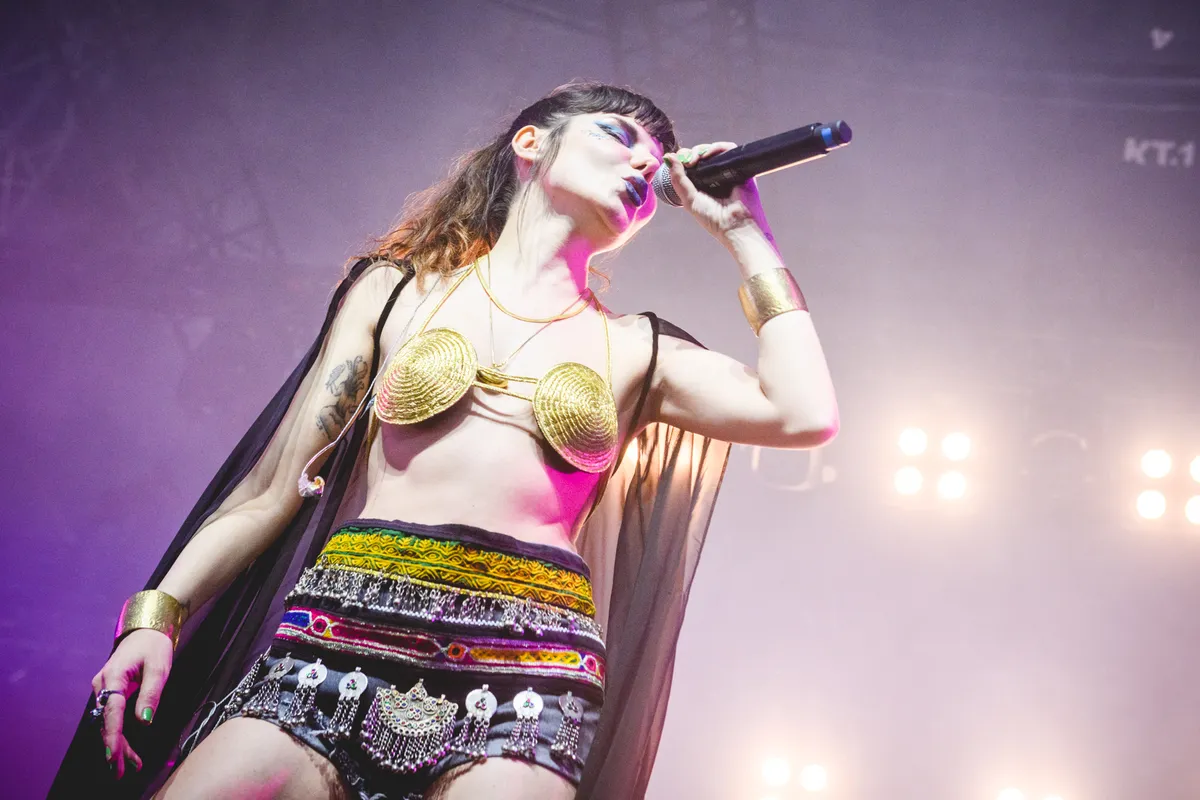 Gaye Su Akyol klinkt als een volledige band, maar in werkelijkheid heeft ze alleen een drummer en een gitarist bij zich, plus een laptop met de thuisgebleven muzikanten. Dat is een beetje dunnetjes, maar een hele band op de been brengen zit er kennelijk financieel nog niet in. Ze zijn wel leuk om naar te kijken, die twee met hun Zorro-maskers. Maar de echte superheld is het podium is Gaye zelf, met haar punkmake-up en gouden bh, met haar korte broekje dat ook dienst doet als percussie-instrument en een doorzichtige zwarte cape. Laten we haar Anatolia dopen. Wat haar superkracht is weten we nog niet, maar die heeft ze vast. Wat ze mist aan pure vocale klasse maakt ze goed in coolheid. Halverwege de ingekorte set (ze begon dik tien minuten te laat) tapt Akyol ineens uit een ander vaatje, met een space-surfliedje over kamelen in de ruimte. Dat nummer is wat ruwer en stoerder, en het werkt door de tempowisseling. Daar achteraan komt een hoekig rocknummer dat niet echt goed is, maar wel fun.