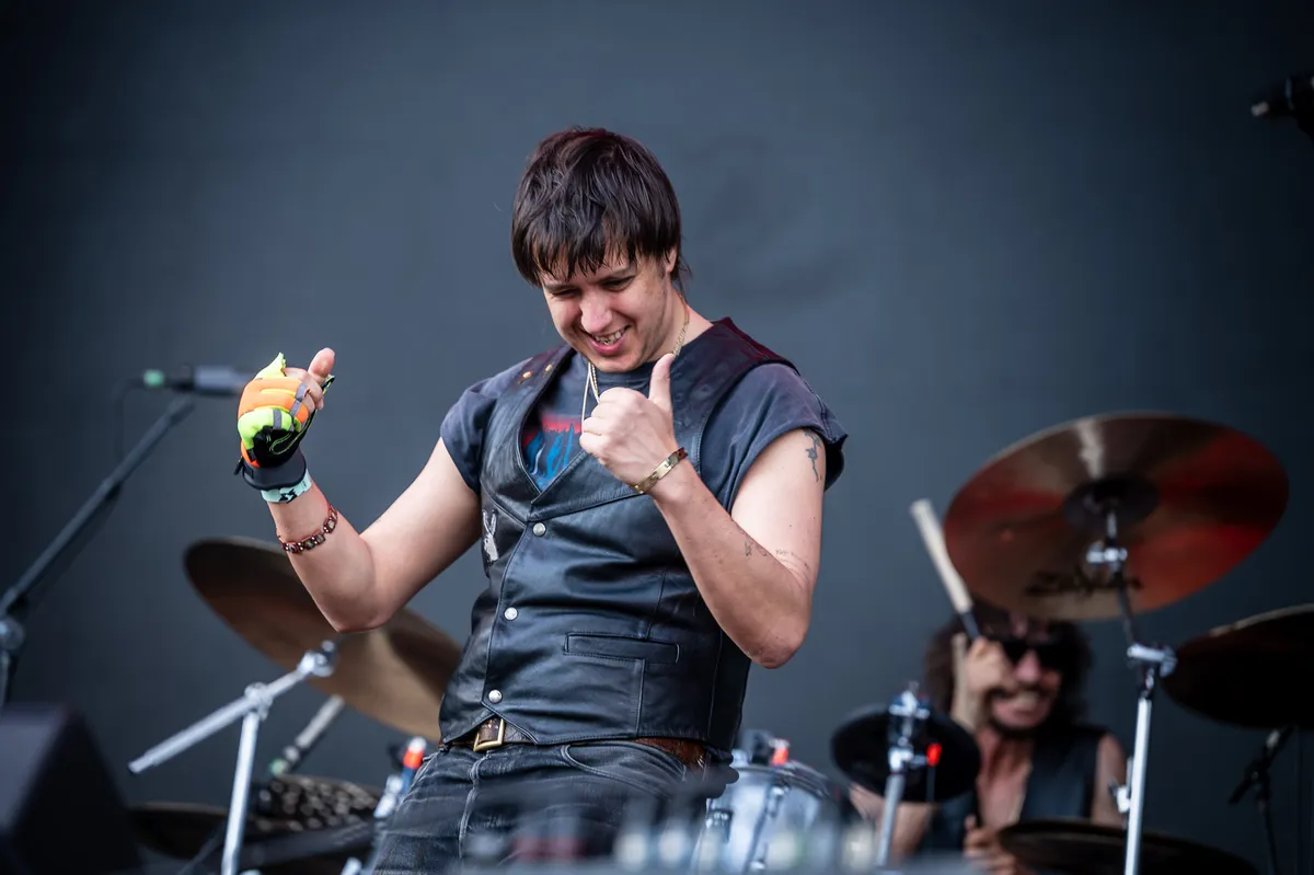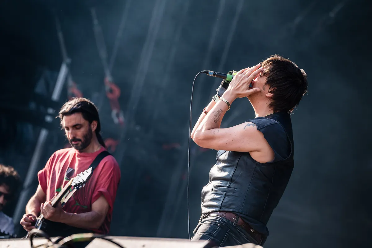 Dit keer gaat-ie op zoek naar zijn publiek. Terwijl zijn band ogenschijnlijk drie liedjes door elkaar en achterstevoren speelt, tuurt Julian op het hoekje in de richting van Stage Two waar drommen mensen vandaan komen, Charlotte Adigéry is net klaar. Leren giletje met Playboy-logo, fluorescerende handschoen, dat is de outfit. Ja ja, de mensen komen. De vraag is hoe lang het duurt voor je ze wegjaagt.