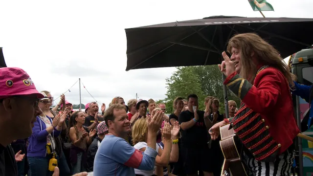 'Toen bekend werd dat wij op Pinkpop zouden spelen, hebben we veel reacties gelezen van scheldende mensen (lacht). Zoals: 'Daar betaal ik toch niet voor!' We staan in het rijtje van Coldplay, Kings Of Leon en Foo Fighters. Velen vonden dat niet kunnen. We hebben nu al een aantal keer op het veld opgetreden en we zijn erg blij met het enthousiaste publiek. We krijgen het publiek echt los en dat terwijl we er eigenlijk niet veel voor hoeven te doen. We hoorden de zanger van Volbeat net roepen dat het publiek hun handen in de lucht moet doen en meeschreeuwen. Bij ons is het repertoire bekend en dat maakt mensen makkelijk enthousiast. Omdat we op een bepaalde manier gekleed zijn toveren we vaak een brede grijns op de gezichten van de mensen. We creëren als het ware een primaire kinderlijke blijdschap.'