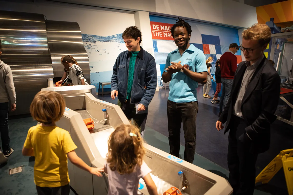 Helaas zijn we vandaag niet in de hel op een door black midi georkestreerd feest, maar in wetenschapsmuseum NEMO. Met een beetje fantasie toch een soort voorportaal van de hel, vol gillende en experimenterende tieners. Geordie: ‘Het is niet echt een museum hè? Meer een soort grote speeltuin. Toch ook wel echt heel cool. Stel je voor dat je een date hiermee naartoe neemt? Je maakt er misschien niet echt indruk mee, maar ze als ze enthousiast is weet je wel dat ze een goede match gaat zijn. ’Morgan: ‘Sowieso top-vijf van musea waar wij met de band naartoe zijn gegaan’.